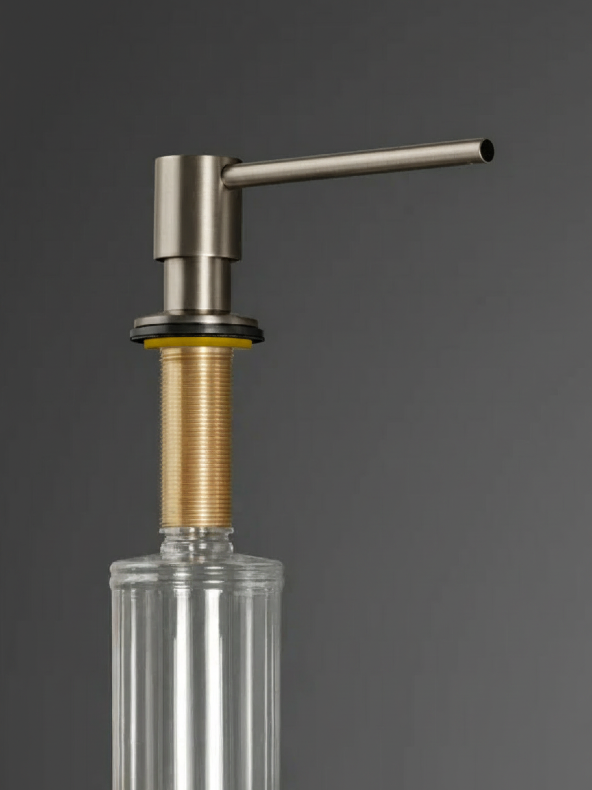 Комплектация: Пластиковая емкость, пластиковая трубка, латунный механизм дозатора