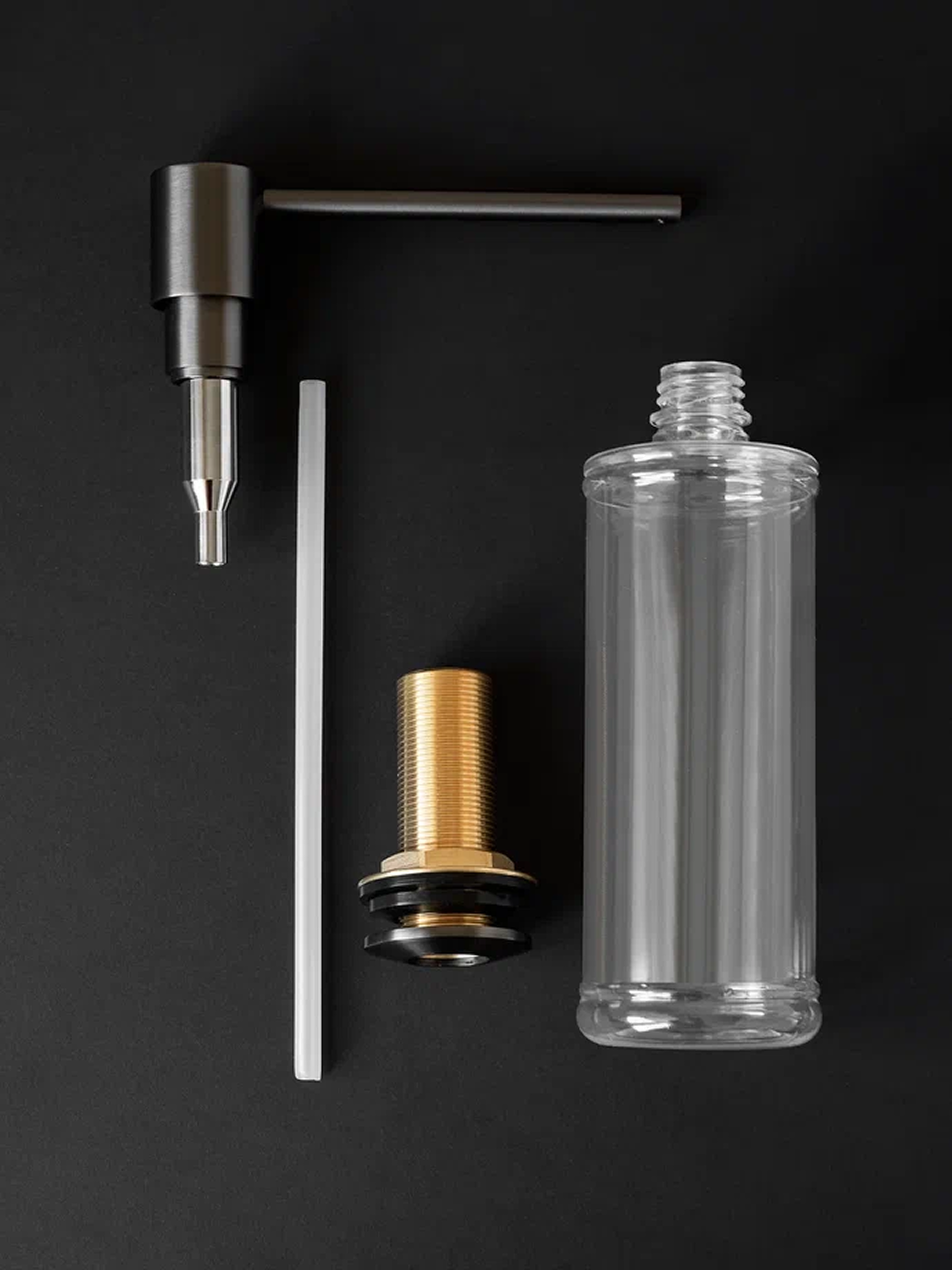 Комплектация: Пластиковая емкость, пластиковая трубка, латунный механизм дозатора