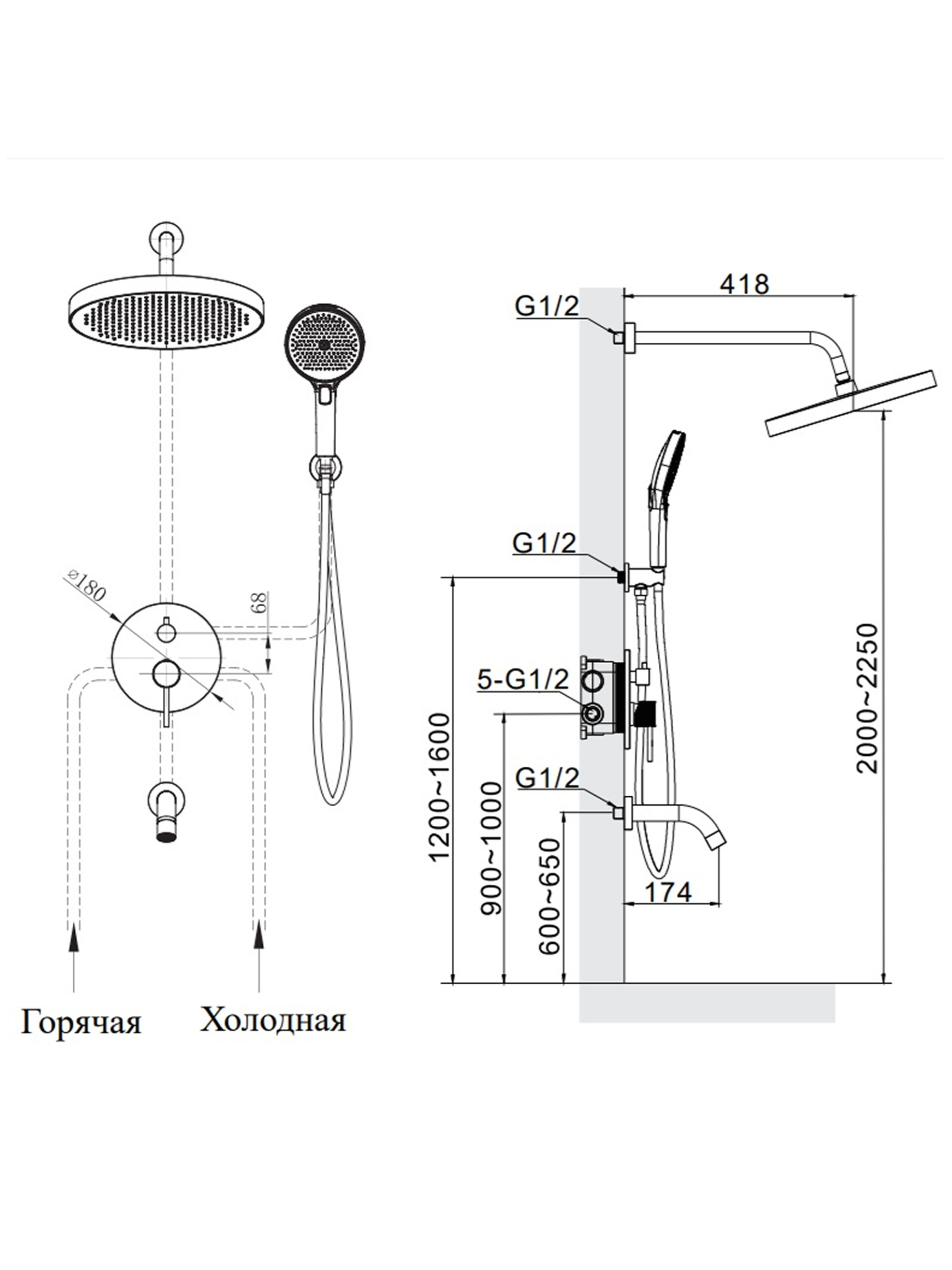 Размер верхнего душа