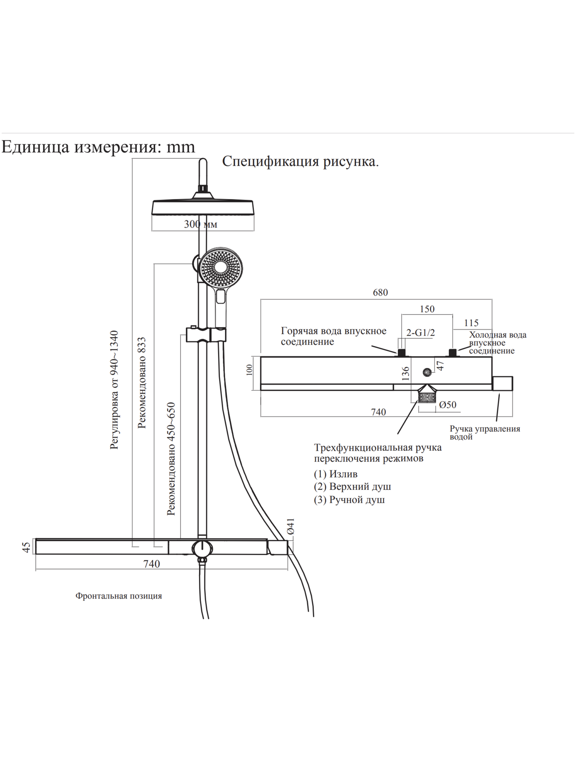 смеситель настенного монтажа, телескопическая штанга с держателем для ручного душа, ручной душ, гибкий полимерный шланг, верхний душ, аэратор, эксцентрики, чаши декоративные