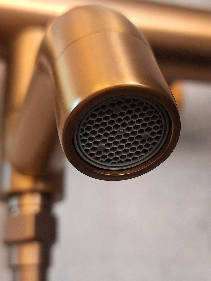 PVD - покрытие, система Telescopico - дает возможность регулирования высоты душевой системы, система Gioco верхнего душа +/-15º, латунный ручной душ, латунный верхний душ, поворотный излив с функцией переключения с излива на ручную лейку, керамический картридж, аэратор - смешивающий воду с воздухом и рассеивает ее, для более объемной и мягкой воды.