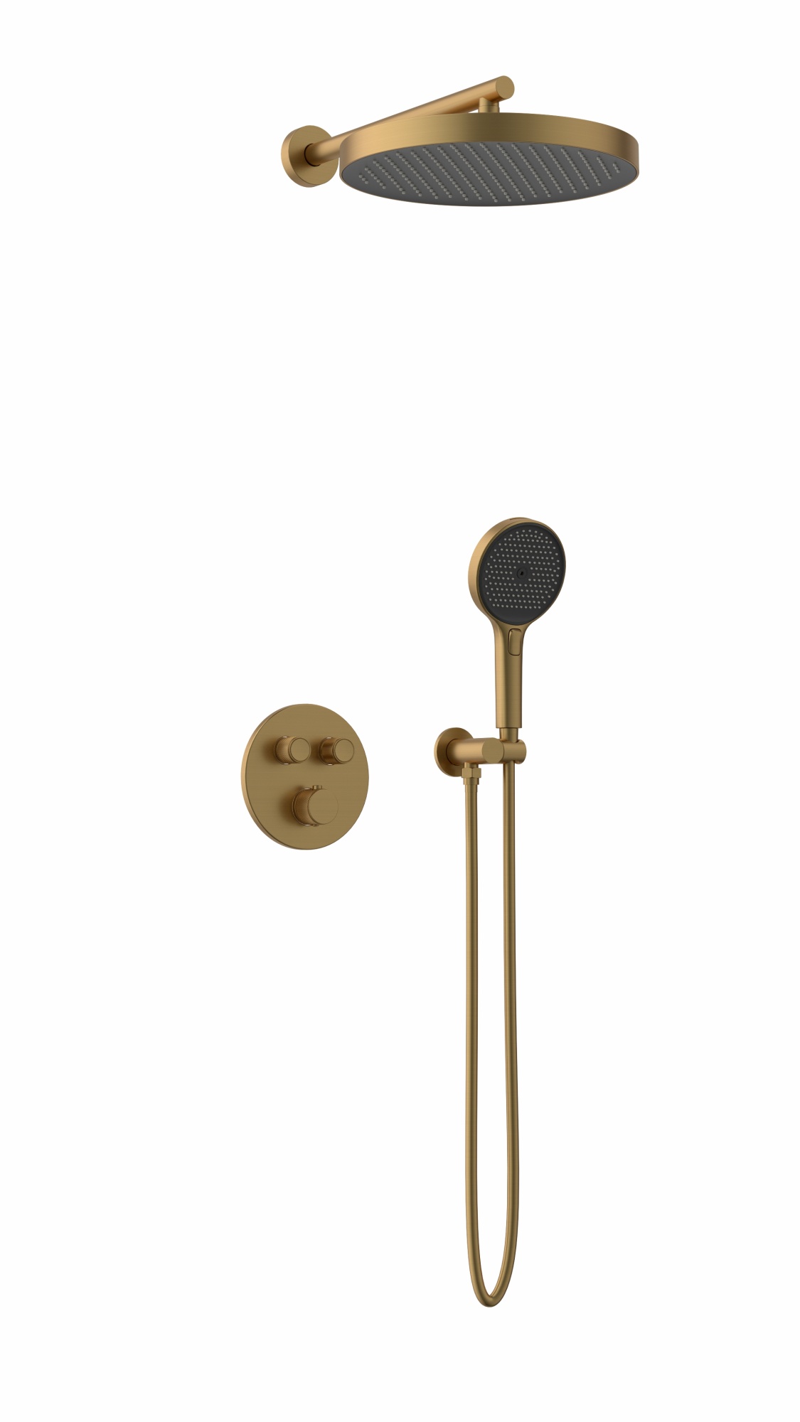 Комплектация: встраиваемая часть, термостатический смеситель, штуцер/держатель ручного душа, ручной душ, гибкий полимерный шланг, верхний душ, кронштейн излив для верхнего душа, отражатели, установочный комплект