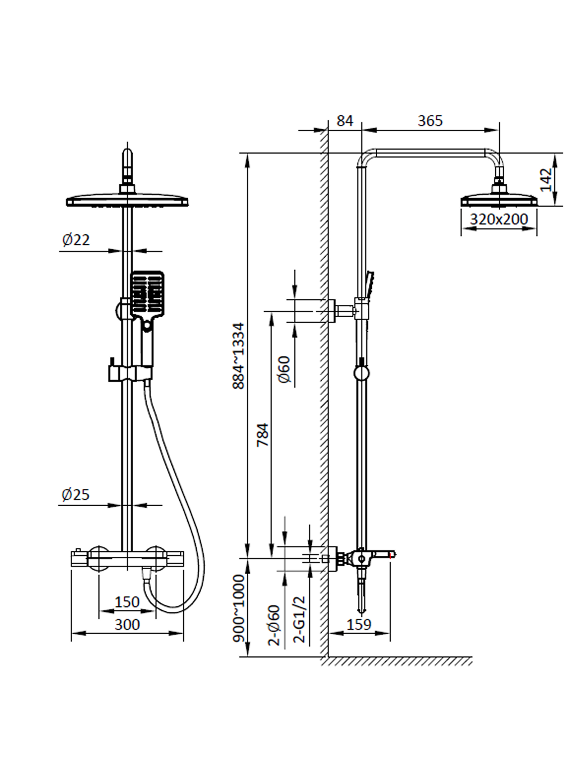 Комплектация: термостатический смеситель, телескопическая штанга с держателем для ручного душа, ручной душ, гибкий полимерный шланг, верхний душ, аэратор, эксцентрики, декоративные чаши