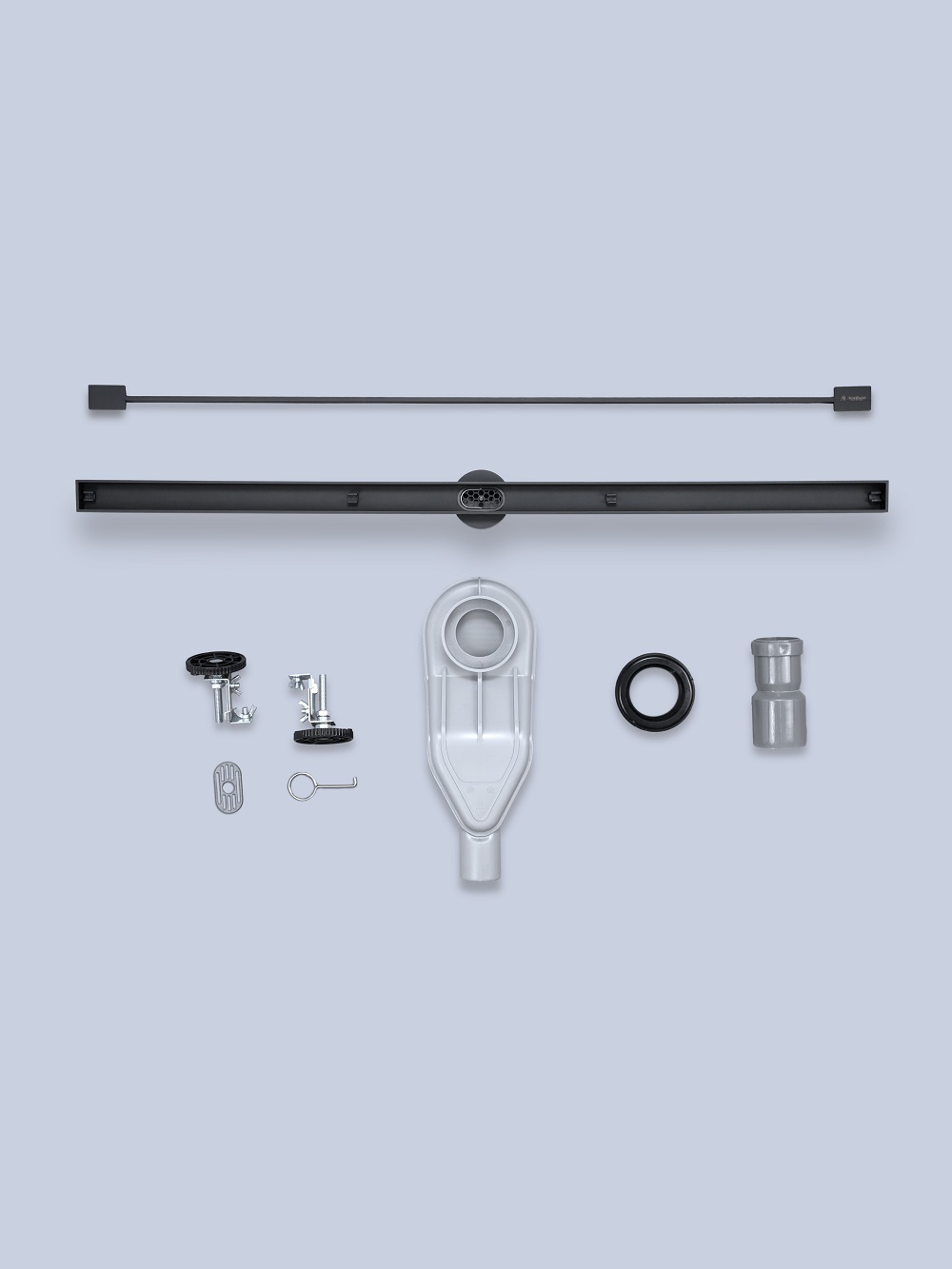 регулируемые опоры / выдерживает нагрузку до 300 кг / высокая пропускная способность / поворотный сифон 360° с регулировкой по высоте / съемный клапан сифона / решетка