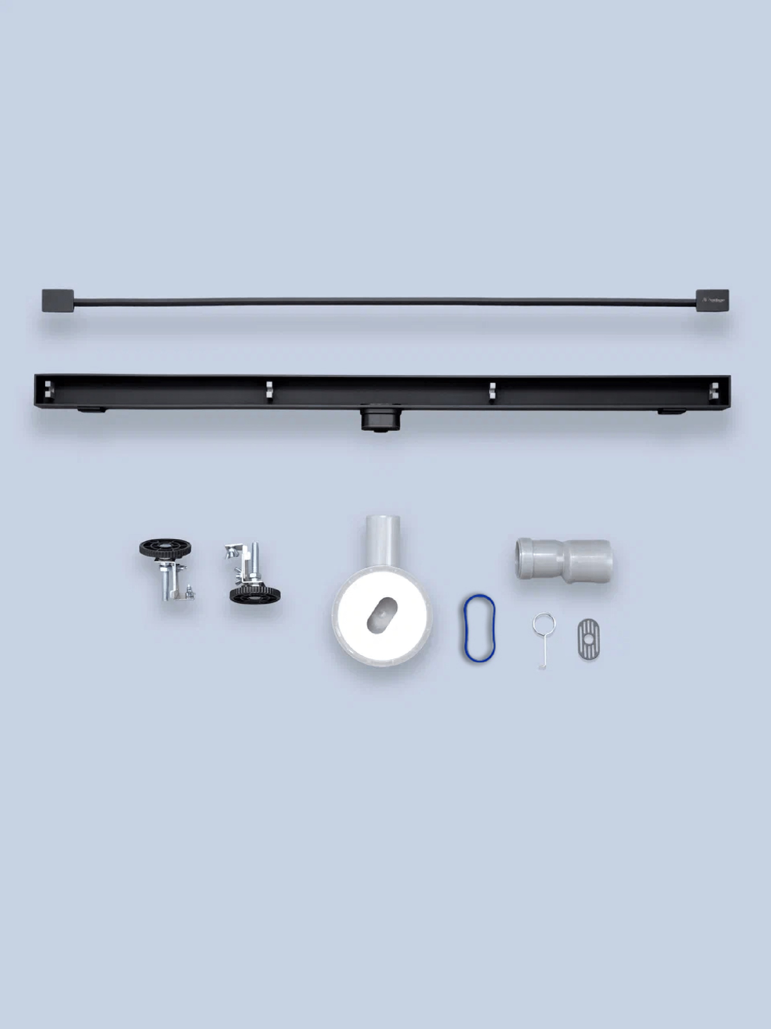 регулируемые опоры / выдерживает нагрузку до 300 кг / высокая пропускная способность / поворотный сифон 360° с регулировкой по высоте / съемный клапан сифона / решетка