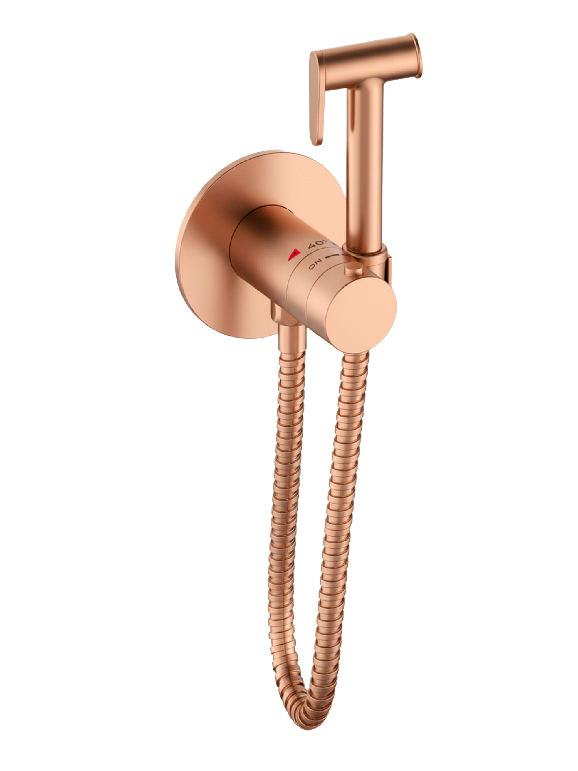 Комплектация: встраиваемая часть, термостатический смеситель, гигиеническая лейка, гибкий металлический шланг, декоративная панель