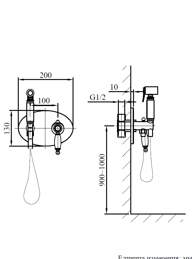 Комплектация: встраиваемая часть, смеситель, штуцер/держатель, гигиеническая лейка, гибкий металлический шланг, декоративная панель