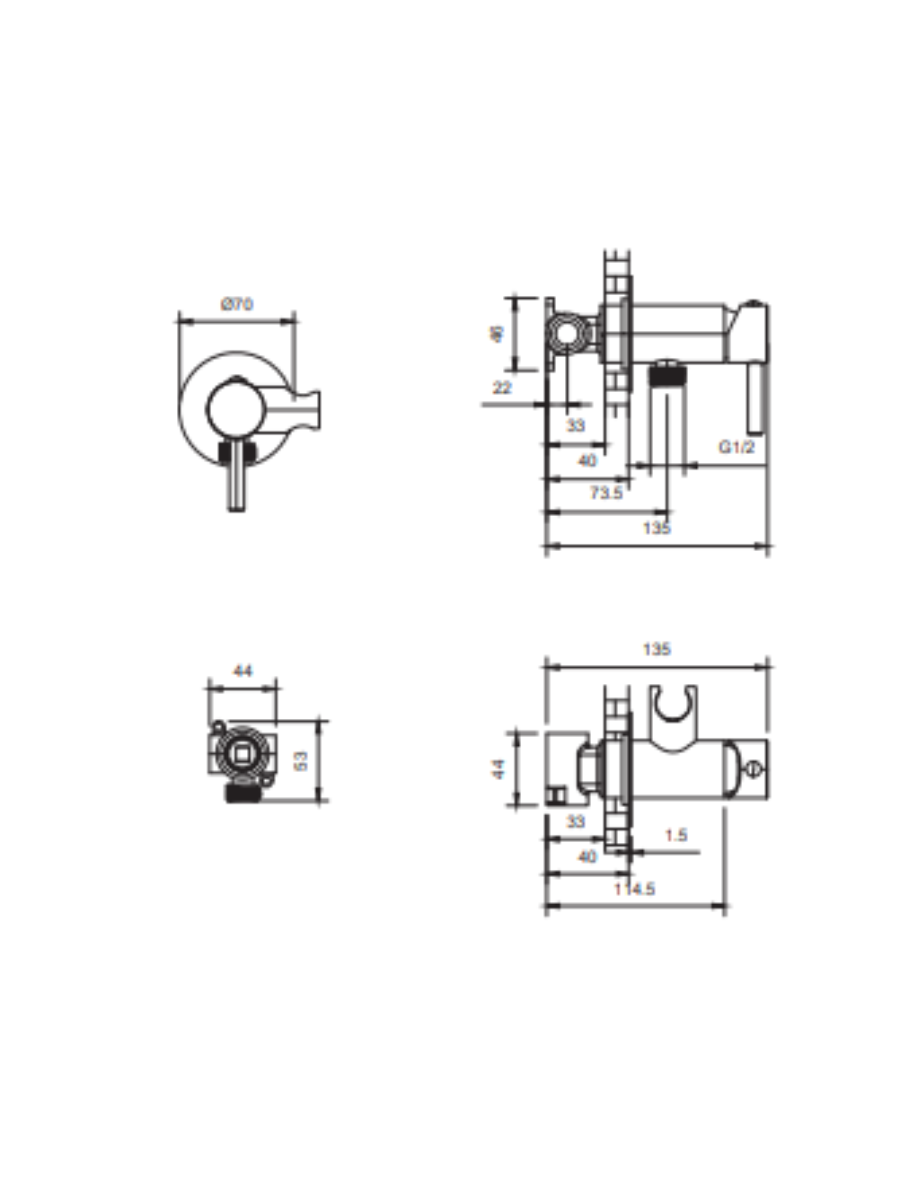 Комплектация: встраиваемая часть, смеситель, гигиеническая лейка, гибкий металлический шланг, декоративная панель