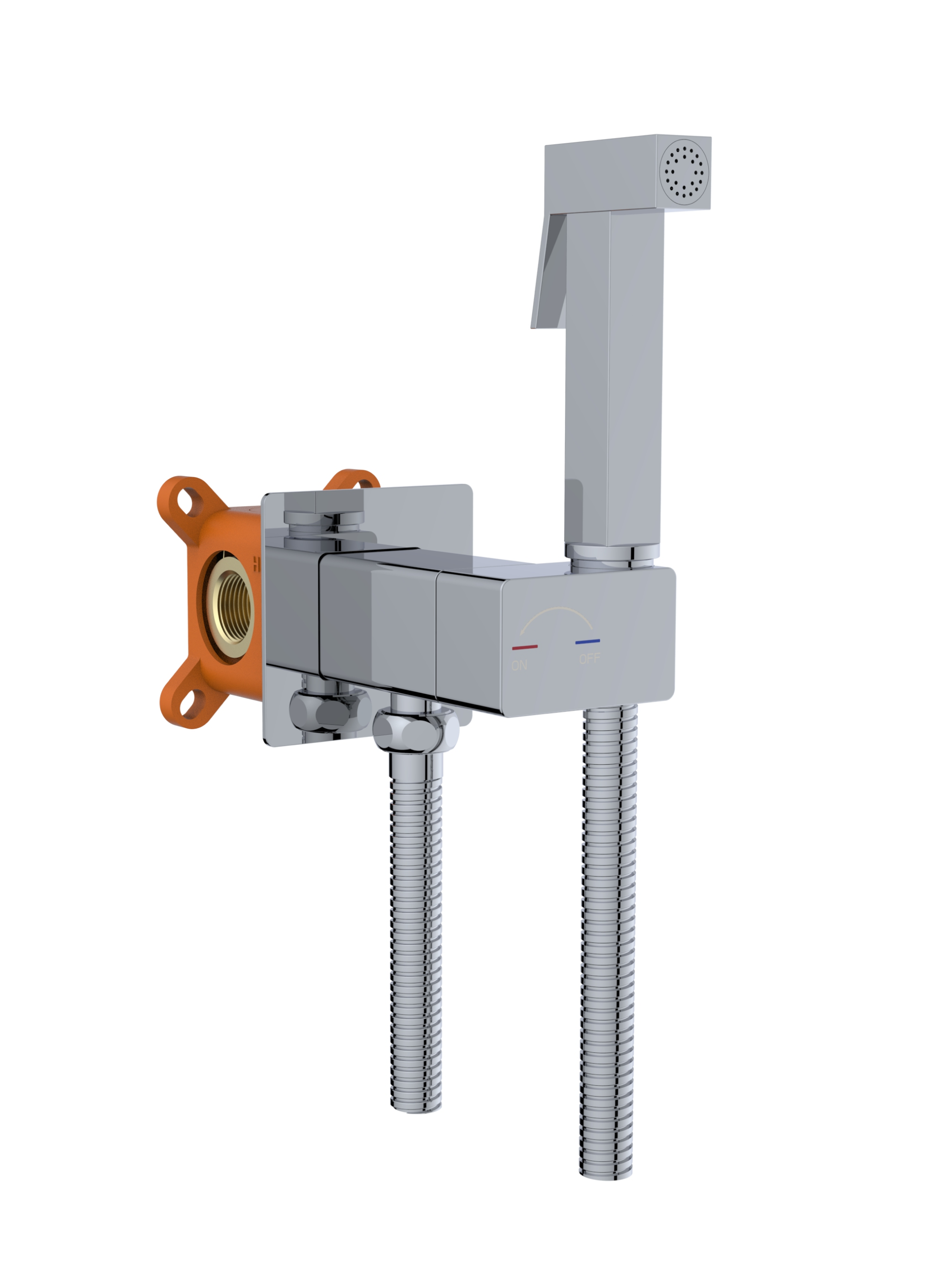 встраиваемая часть, смеситель, гигиеническая лейка, гибкий металлический шланг, декоративная панель