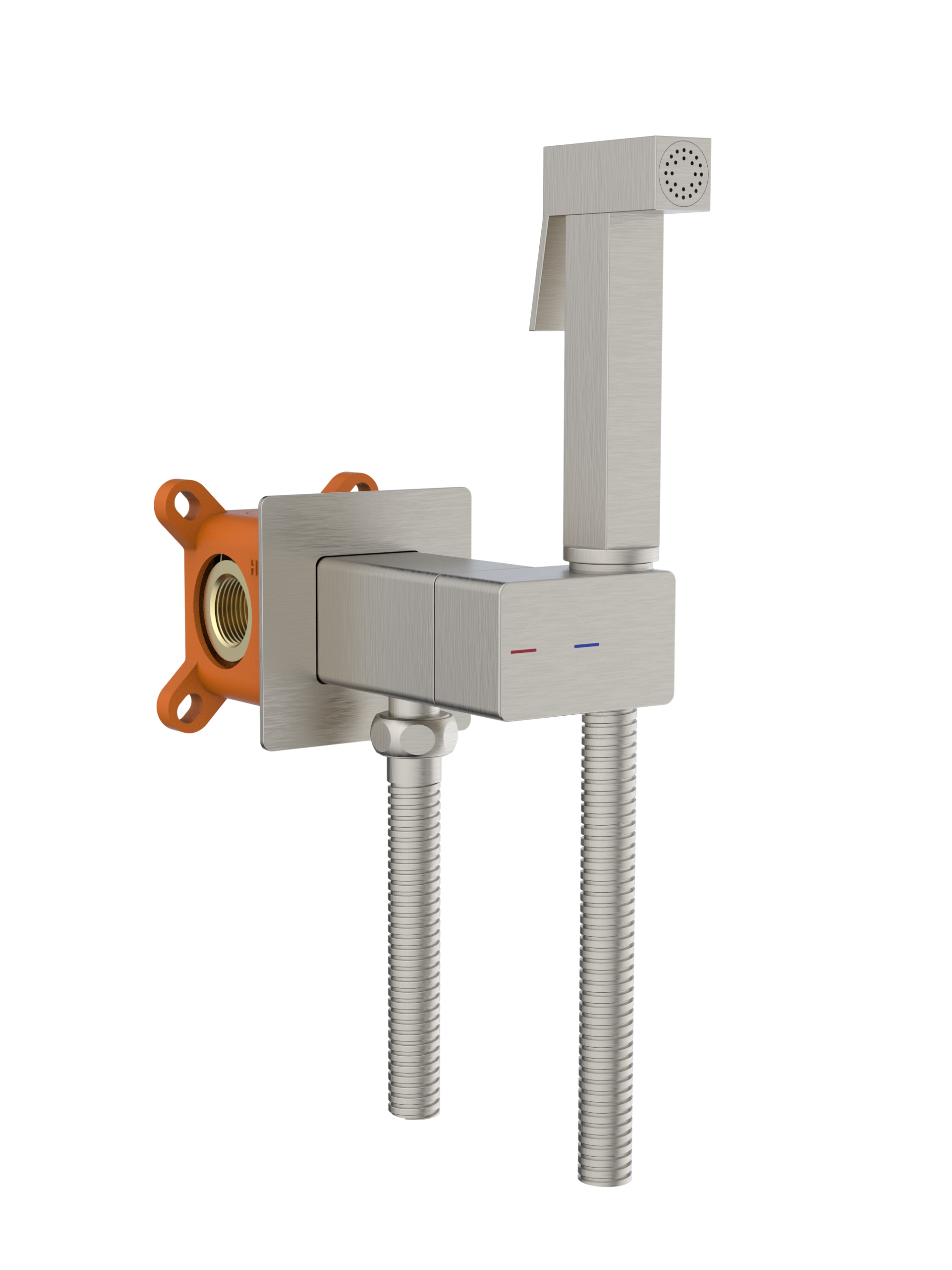 встраиваемая часть, смеситель, гигиеническая лейка, гибкий металлический шланг, декоративная панель