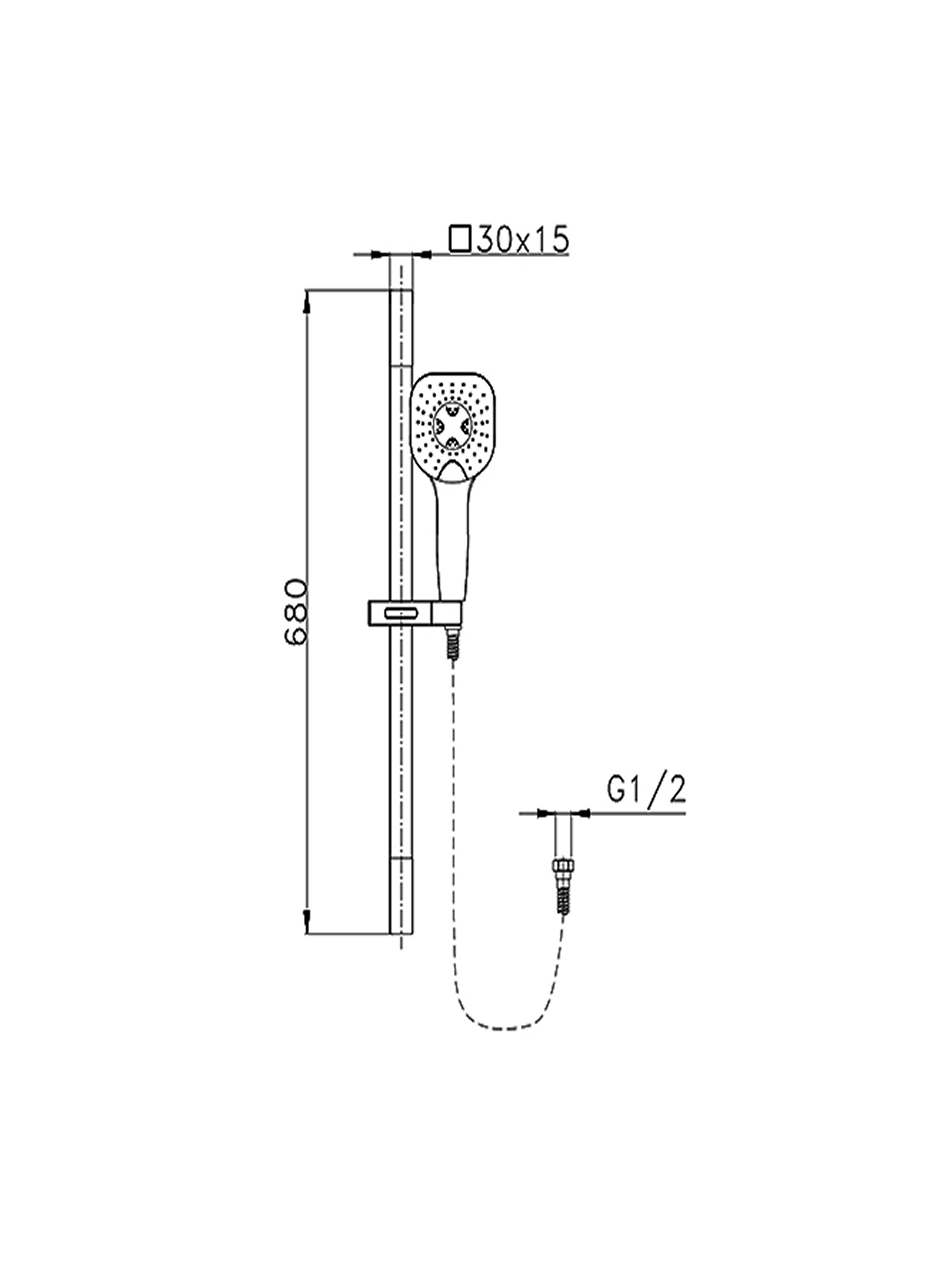 Комплектация: душевая штанга, держатель ручного душа, ручной душ, гибкий полимерный шланг, установочный комплект