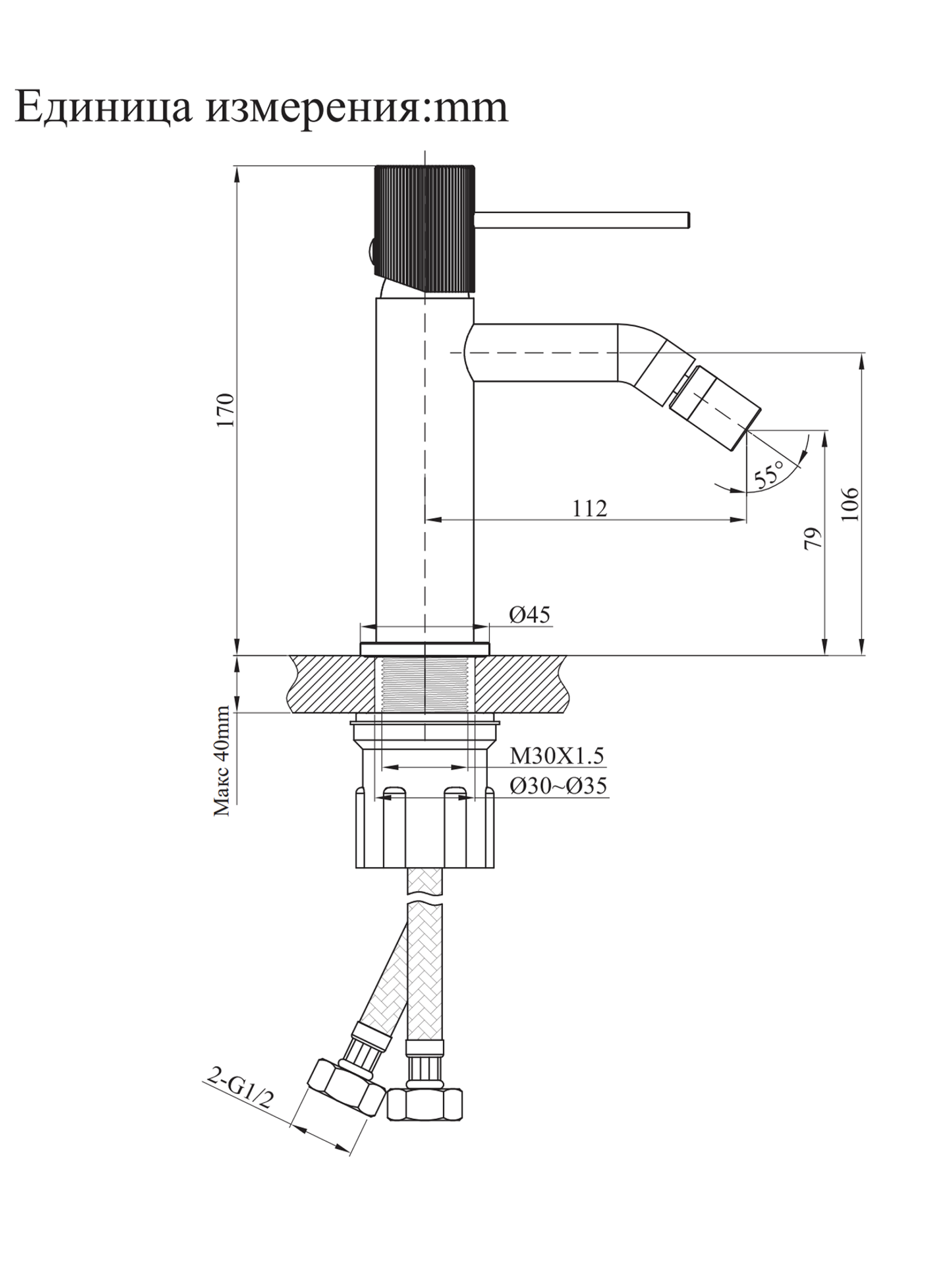 смеситель для биде, гибкие подводки 60 см, аэратор - смешивающий воду с воздухом и рассеивает ее, для более объемной и мягкой воды, керамический картридж