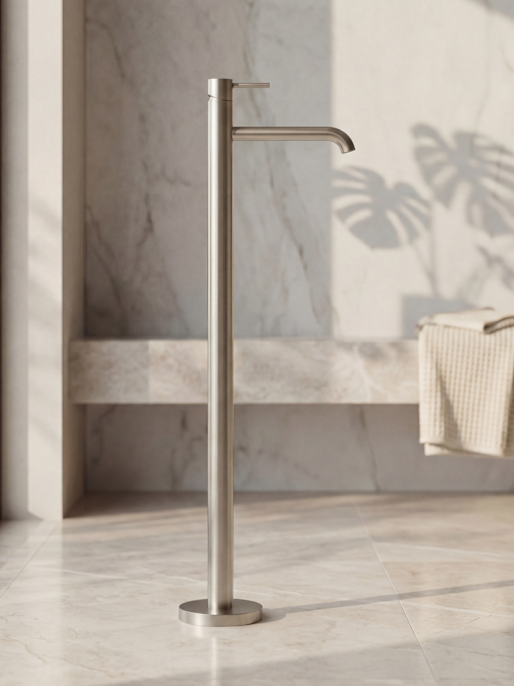 Основной корпус смесителя, полая труба, подводки, декоративная накладка, установочный бокс, установочный комплект