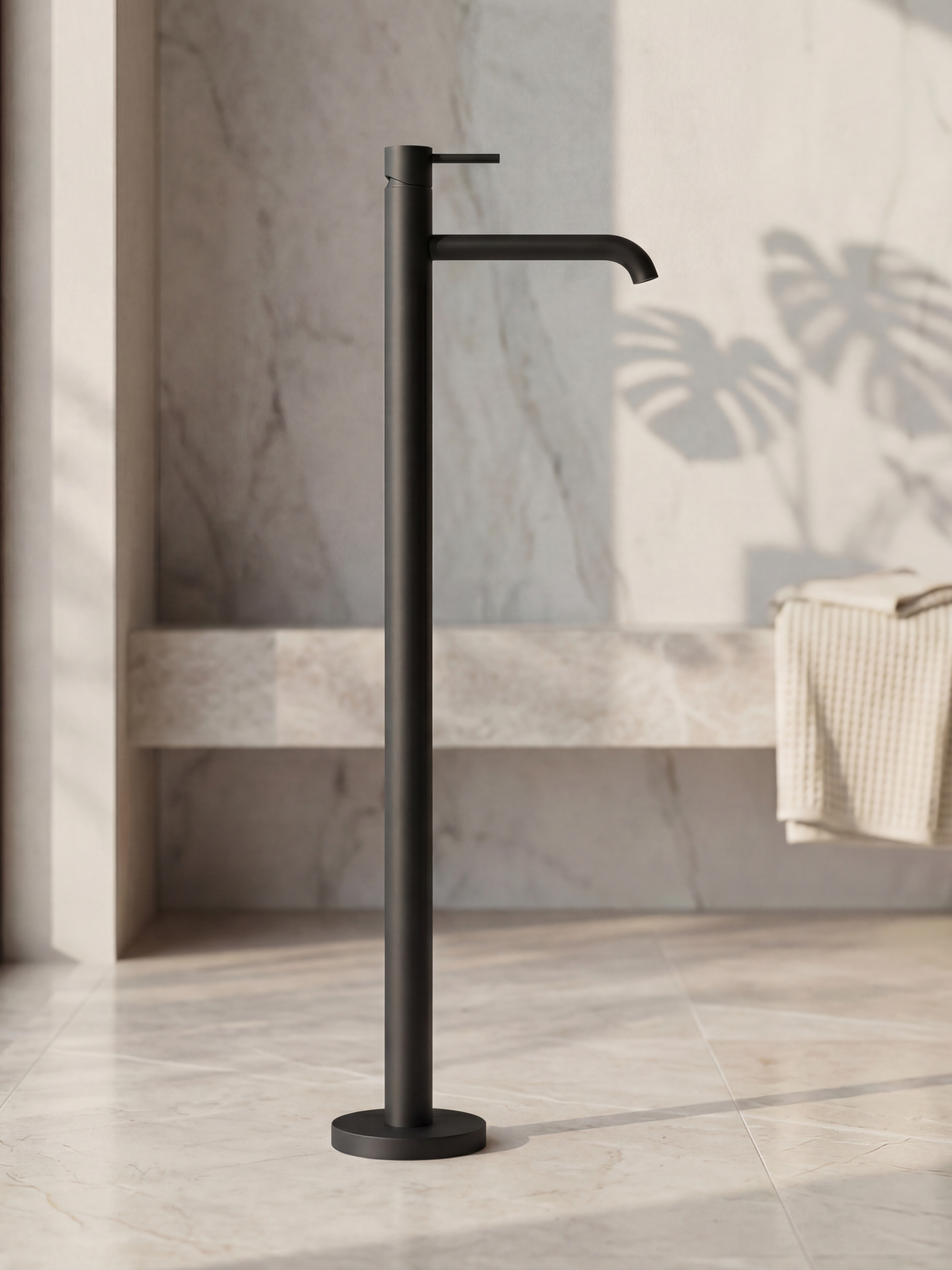 Основной корпус смесителя, полая труба, подводки, декоративная накладка, установочный бокс, установочный комплект