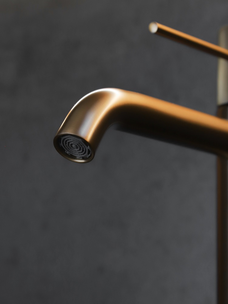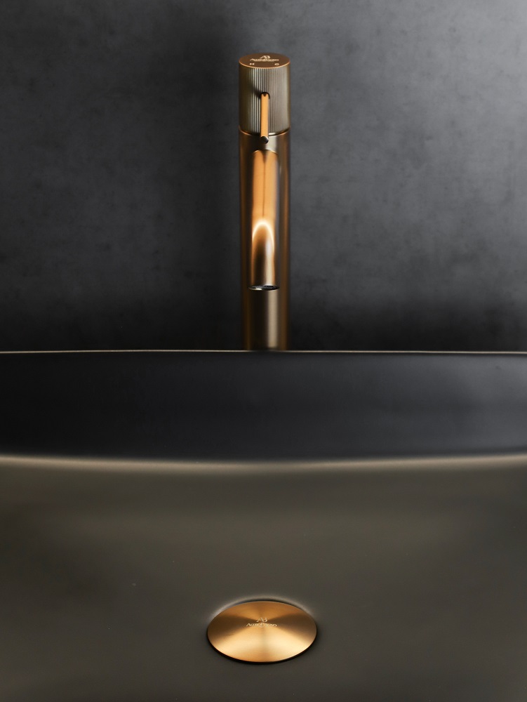 смеситель для накладных раковин, PVD - покрытие, гибкие подводки 60 см, аэратор - смешивающий воду с воздухом и рассеивает ее, для более объемной и мягкой воды, керамический картридж