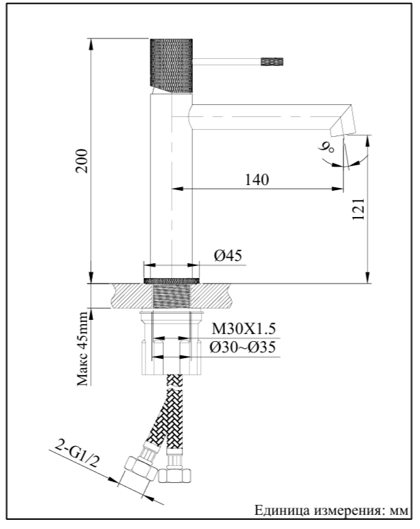 Комплектация: смеситель, комплект подводок, аэратор, установочный комплект