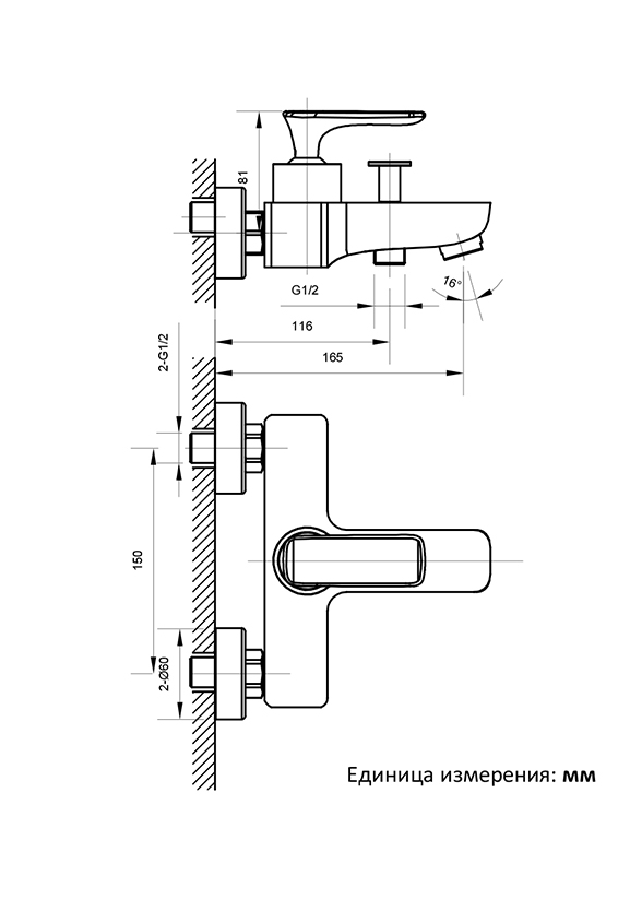 Комплектация: смеситель настенного монтажа, аэратор, эксцентрики, чаши декоративные