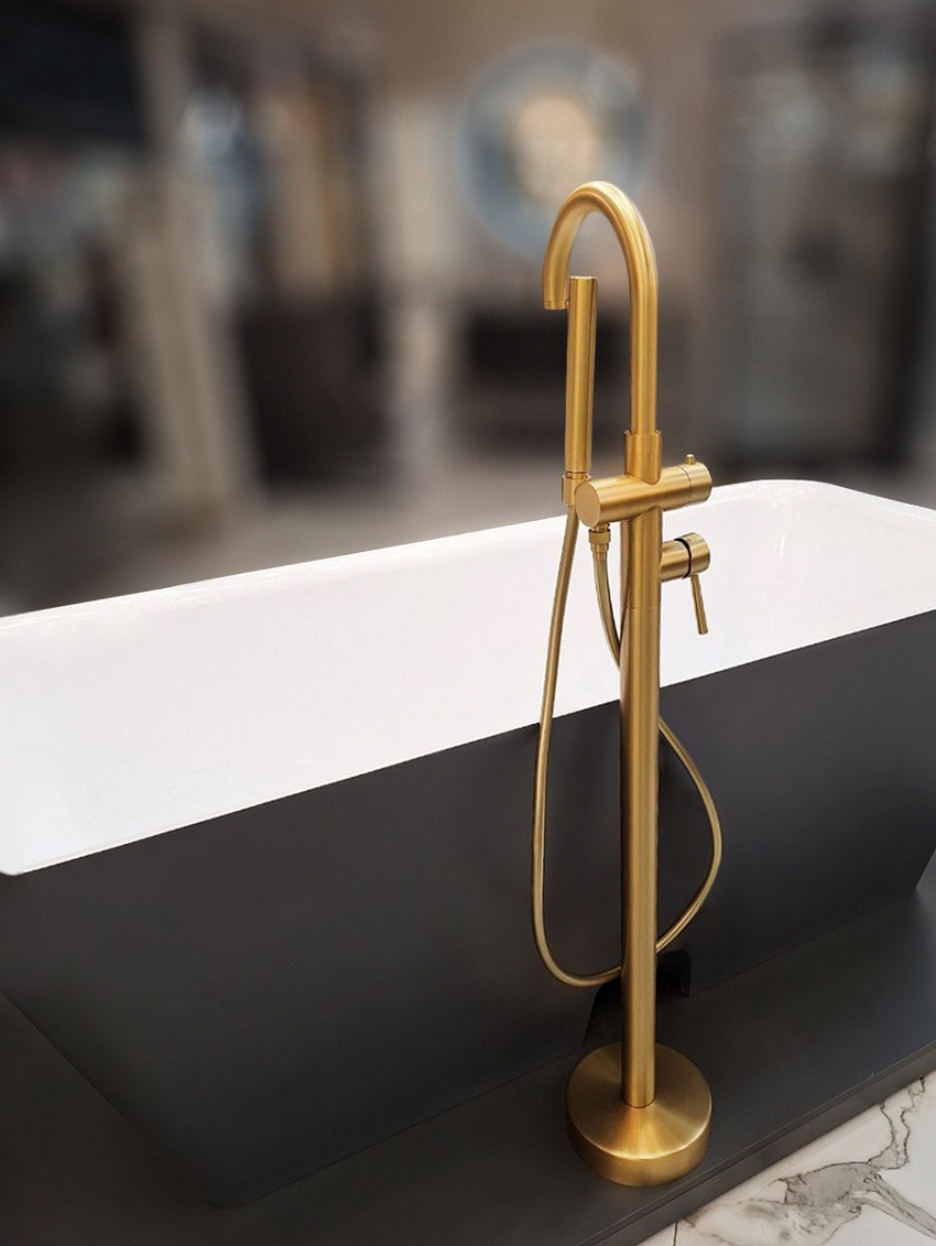 встраиваемая часть в пол, смеситель, латунный ручной душ, гибкий полимерный шланг, аэратор, установочный комплект