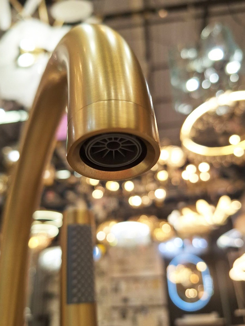 PVD - покрытие, латунный ручной душ, гибкий полимерный шланг с защитой от залома и гладкой поверхностью, аэратор - смешивающий воду с воздухом и рассеивает ее, для более объемной и мягкой воды, керамический картридж