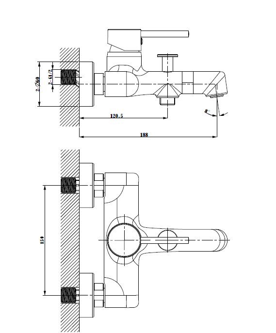 Комплектация: смеситель настенного монтажа, аэратор, эксцентрики, чаши декоративные