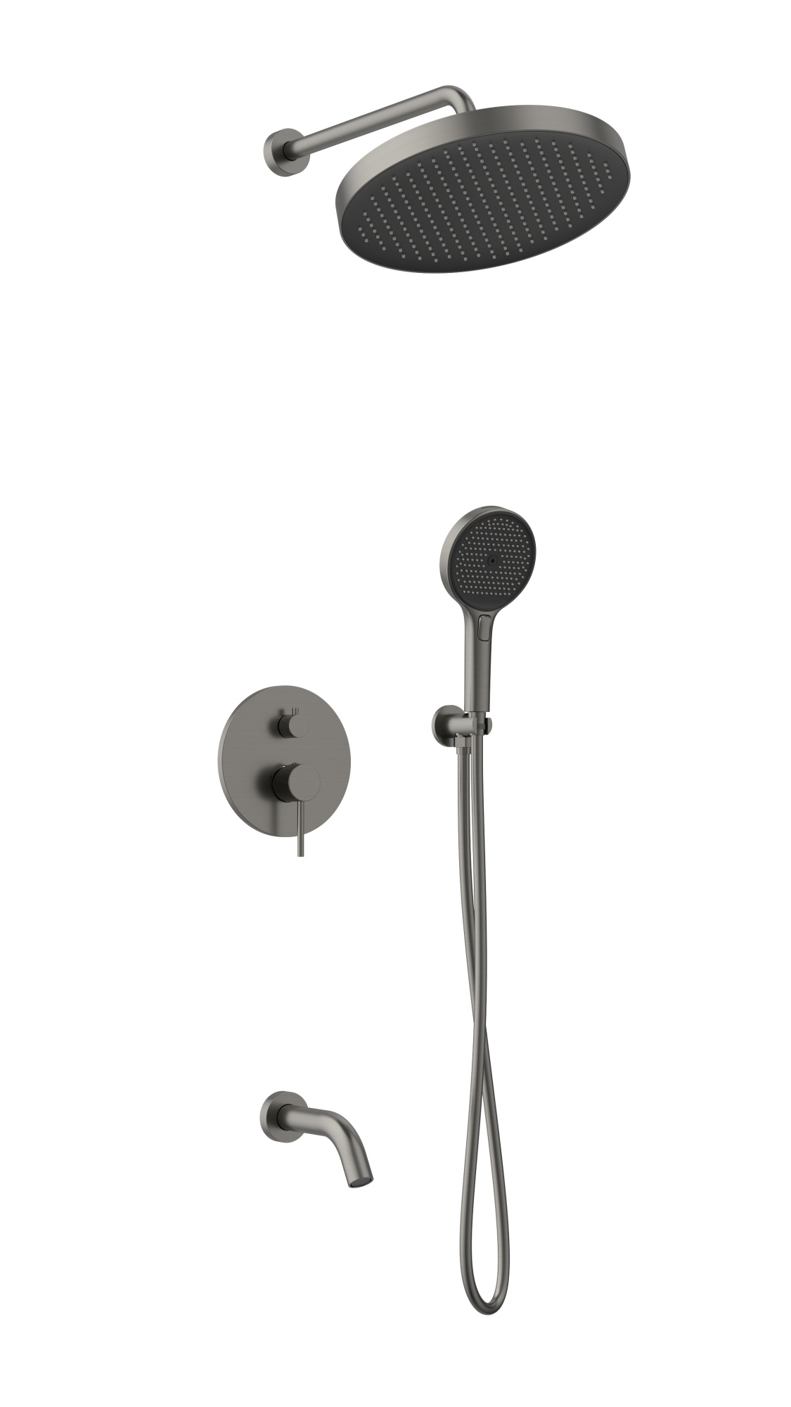 Комплектация: встраиваемая часть, смеситель с трехпозиционным переключением, излив, штуцер/держатель ручного душа, ручной душ, гибкий полимерный шланг, верхний душ, кронштейн держатель для верхнего душа, отражатели, установочный комплект.