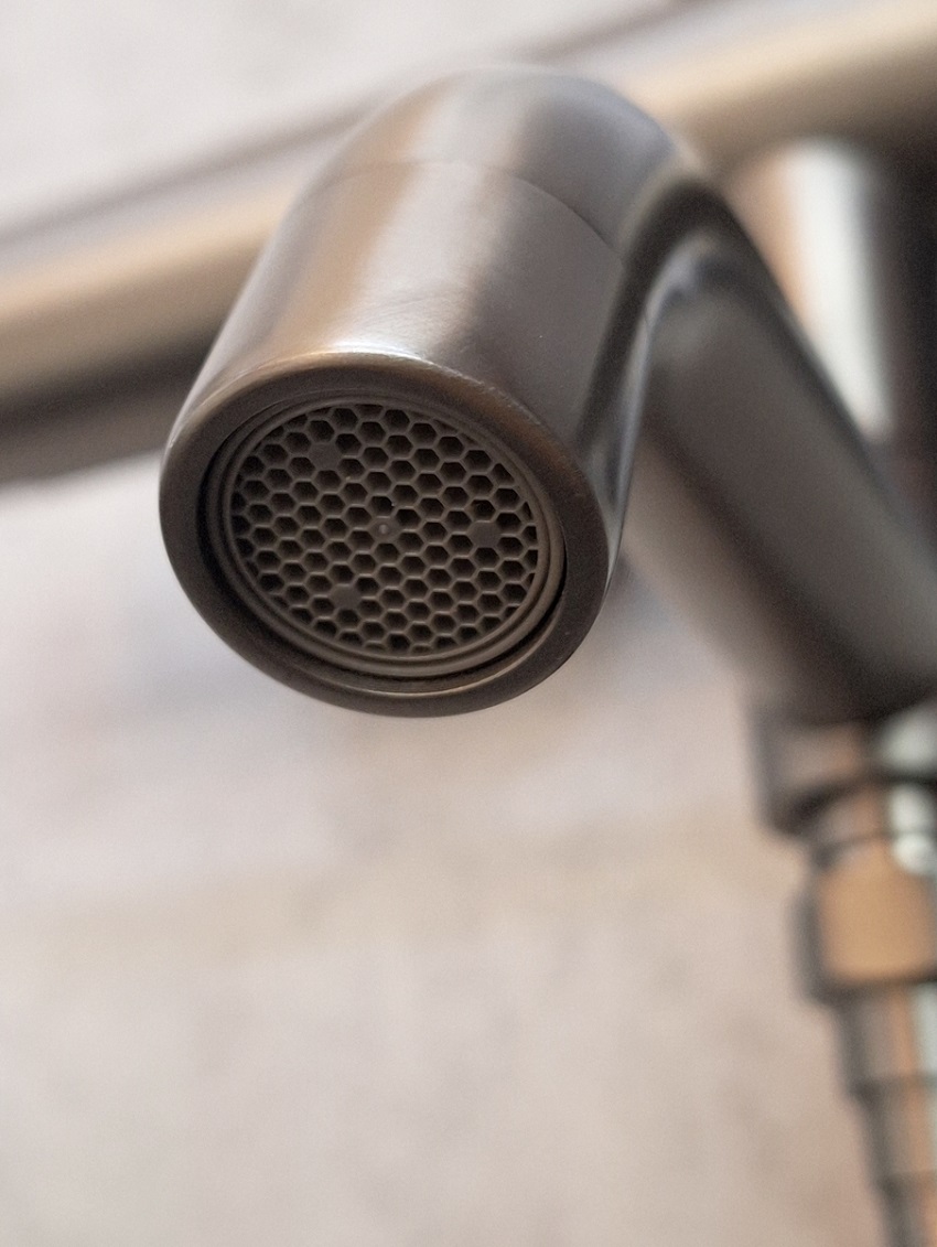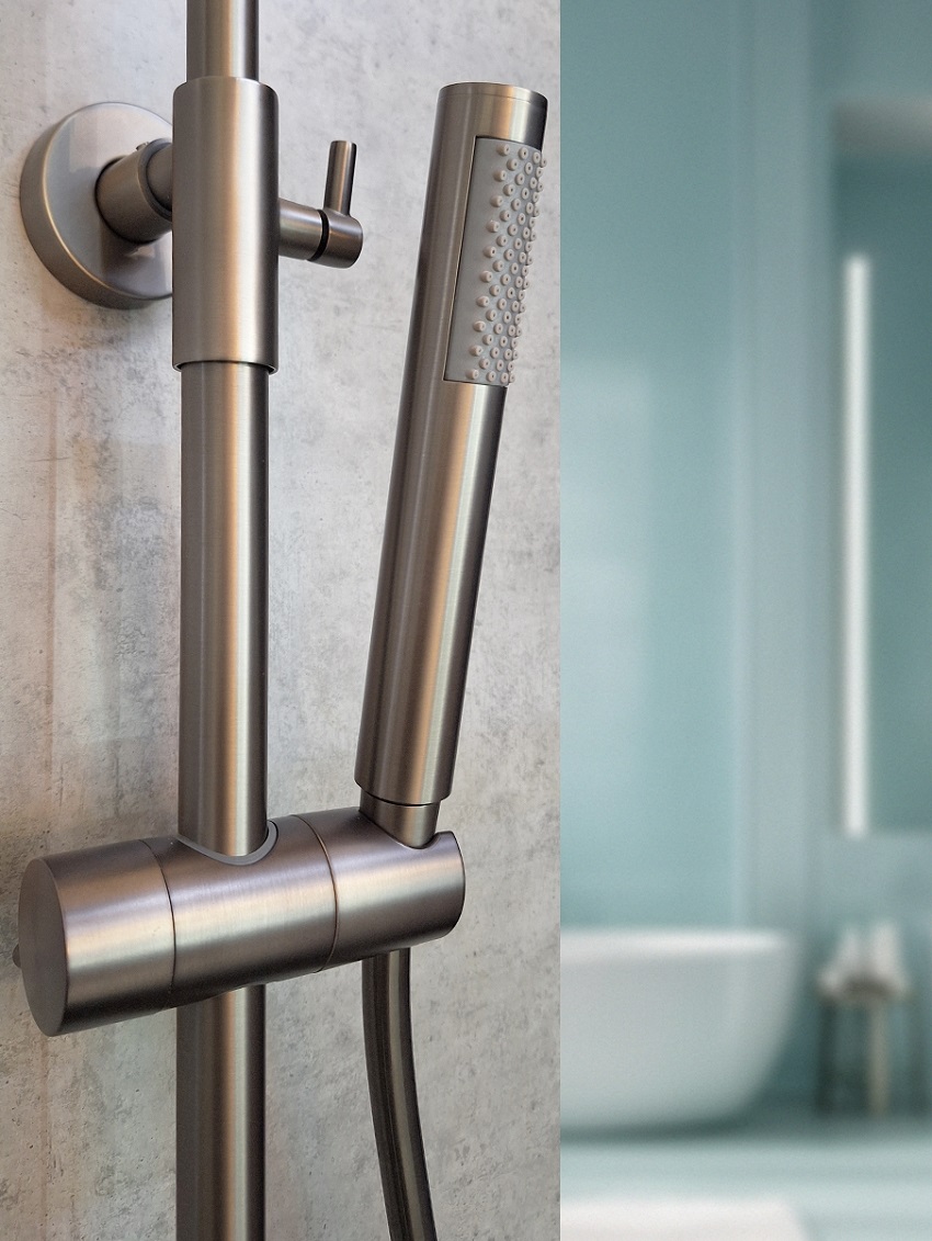PVD - покрытие, система Telescopico - дает возможность регулирования высоты душевой системы, система Gioco верхнего душа +/-15º, латунный ручной душ, латунный верхний душ, поворотный излив с функцией переключения с излива на ручную лейку, керамический картридж, аэратор - смешивающий воду с воздухом и рассеивает ее, для более объемной и мягкой воды.