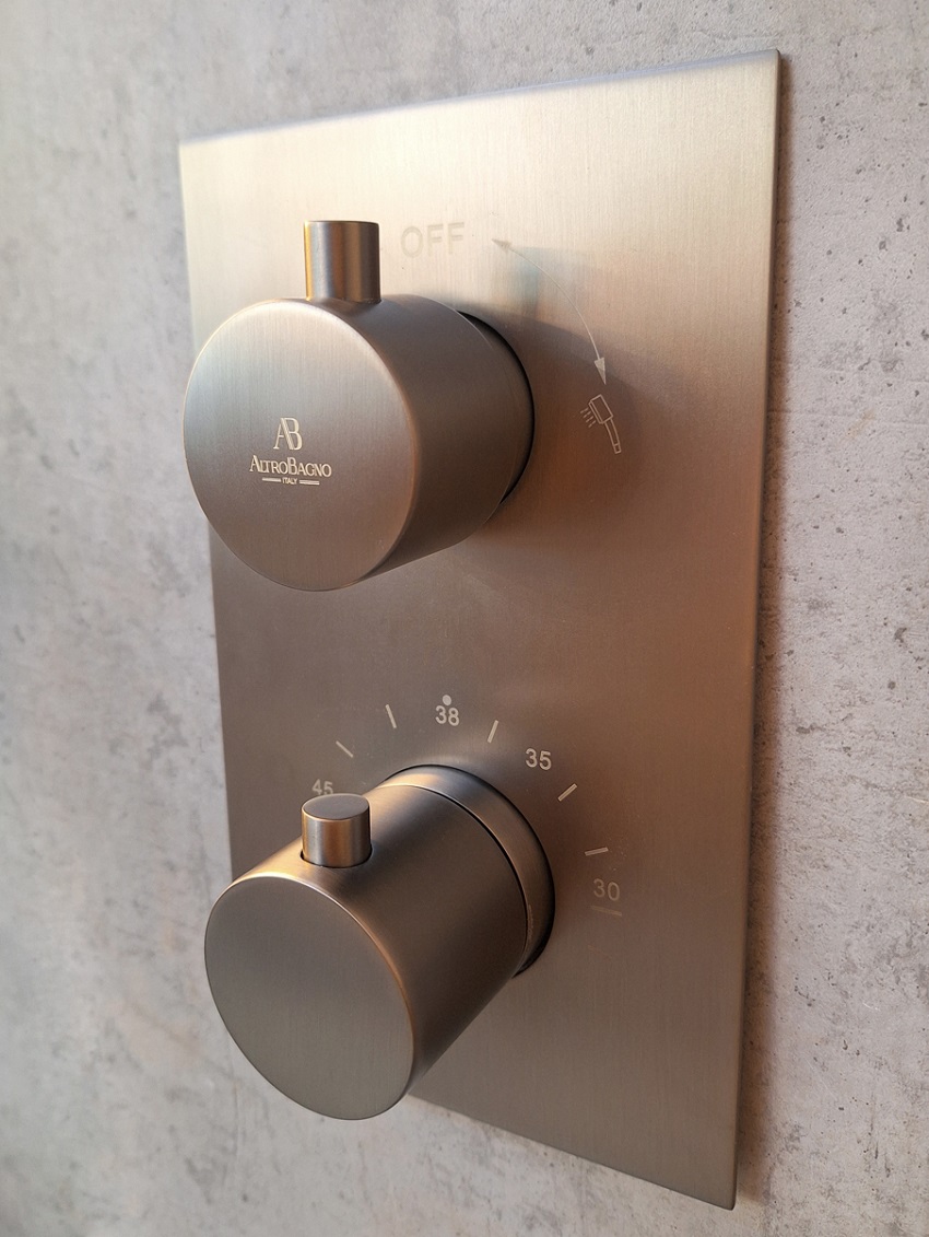 Дополнительные свойства: PVD - покрытие, система ToccoFreddo - исключает возможность ожога о внешнюю поверхность смесителя, система Gioco верхнего душа +/-15º, латунный верхний душ