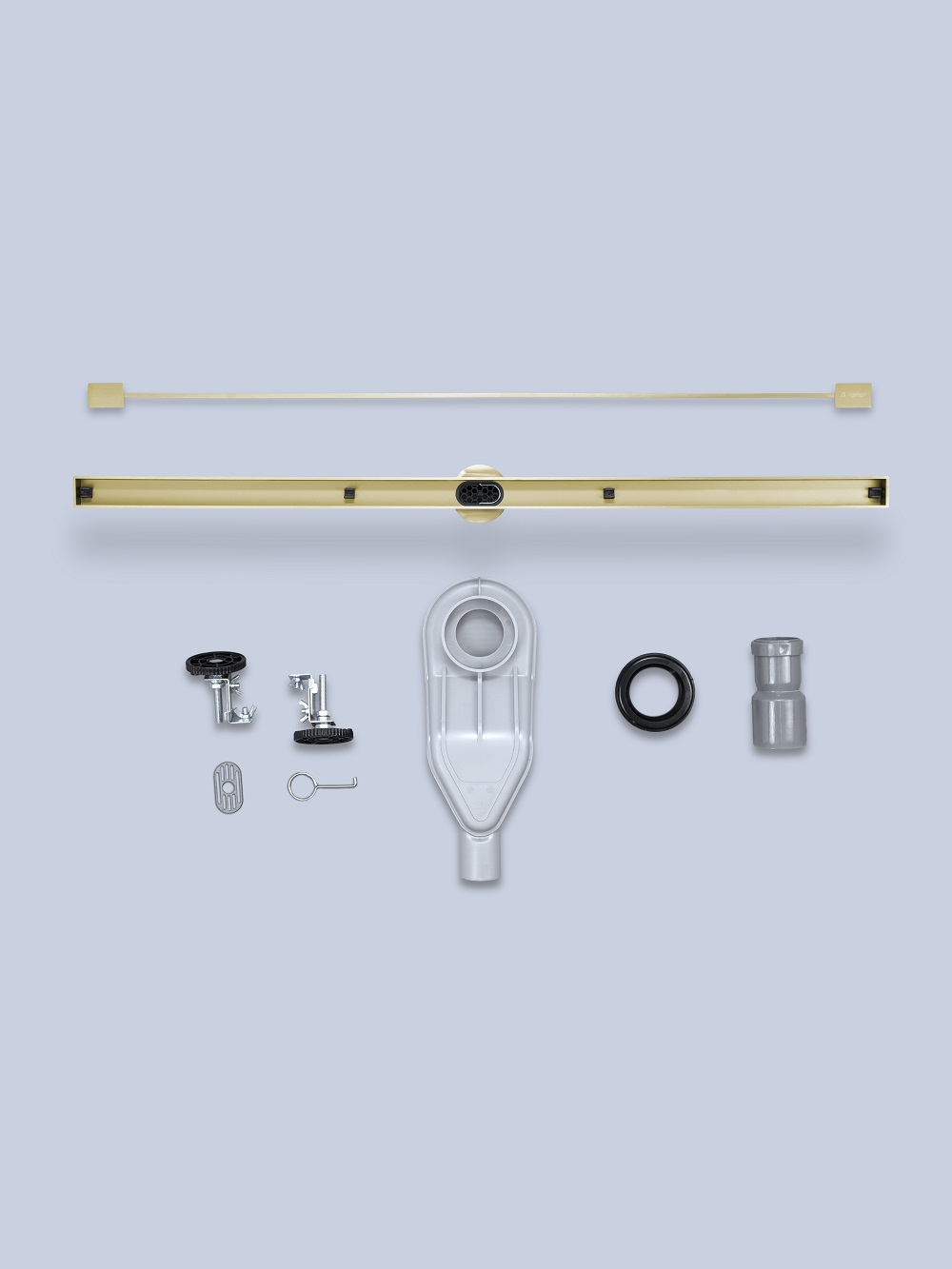 регулируемые опоры / выдерживает нагрузку до 300 кг / высокая пропускная способность / поворотный сифон 360° с регулировкой по высоте / съемный клапан сифона / решетка