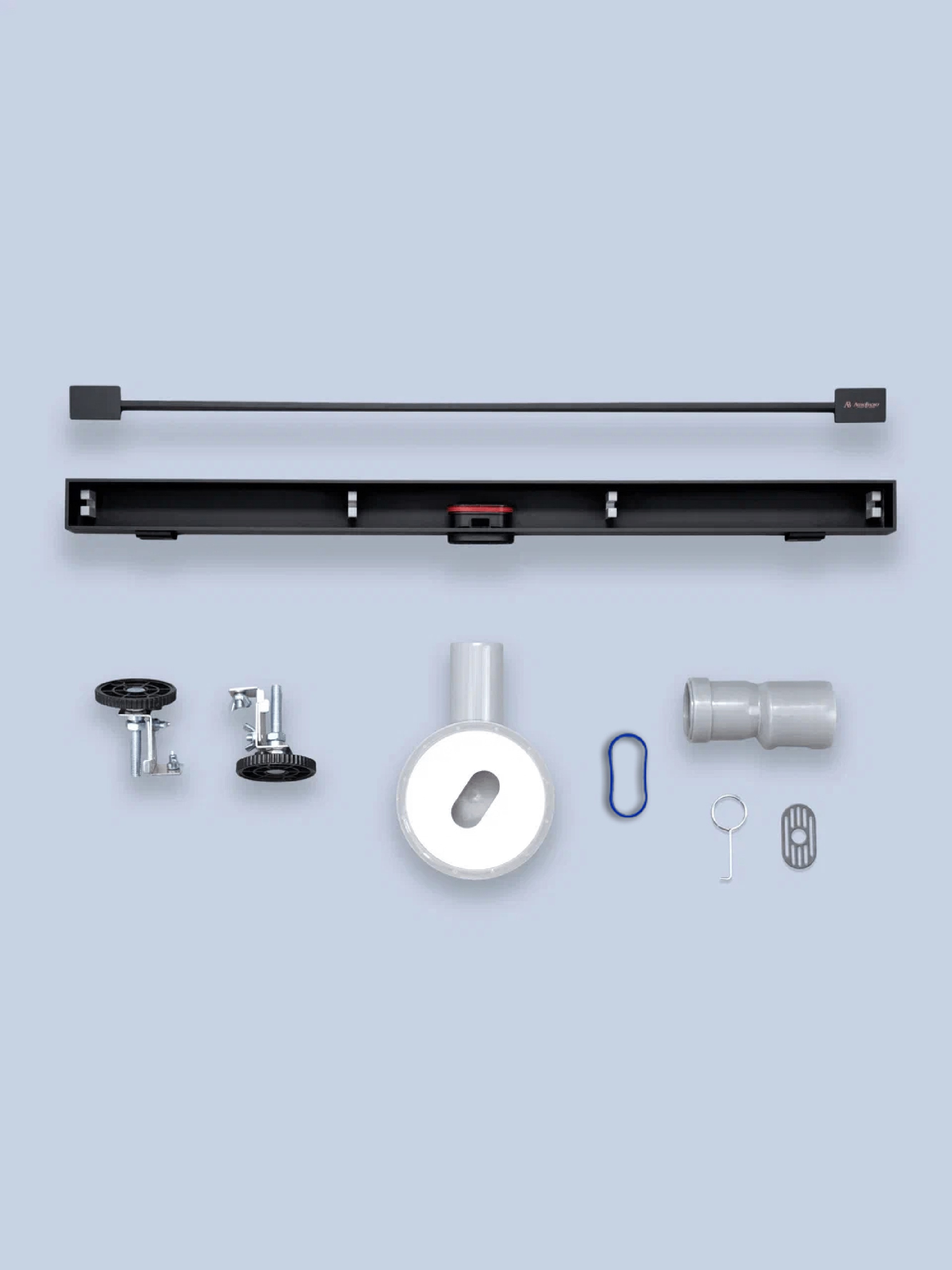 регулируемые опоры / выдерживает нагрузку до 300 кг / высокая пропускная способность / поворотный сифон 360° с регулировкой по высоте / съемный клапан сифона / решетка