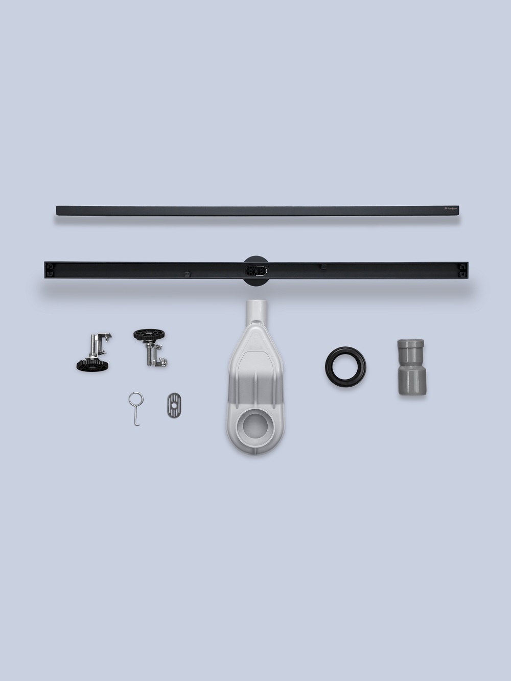 регулируемые опоры / выдерживает нагрузку до 300 кг / высокая пропускная способность / поворотный сифон 360° с регулировкой по высоте / съемный клапан сифона / решетка