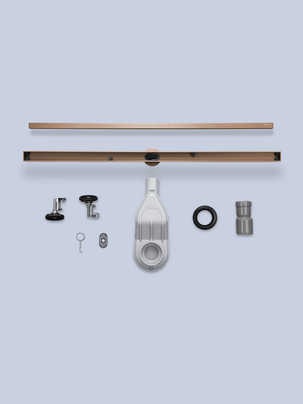 регулируемые опоры / выдерживает нагрузку до 300 кг / высокая пропускная способность / поворотный сифон 360° с регулировкой по высоте / съемный клапан сифона / решетка