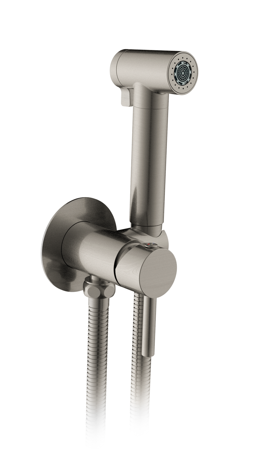 Комплектация: встраиваемая часть, смеситель, гигиеническая лейка, гибкий металлический шланг, декоративная панель