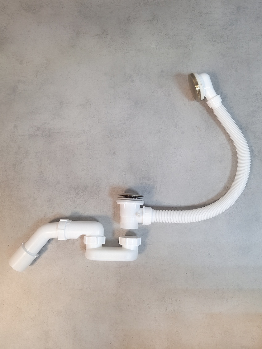 слив-перелив, декоративная накладка на слив, донный клапан с системой клик - клак , отвод для подключения слива-перелива, сифон, комплект резинок для установки.