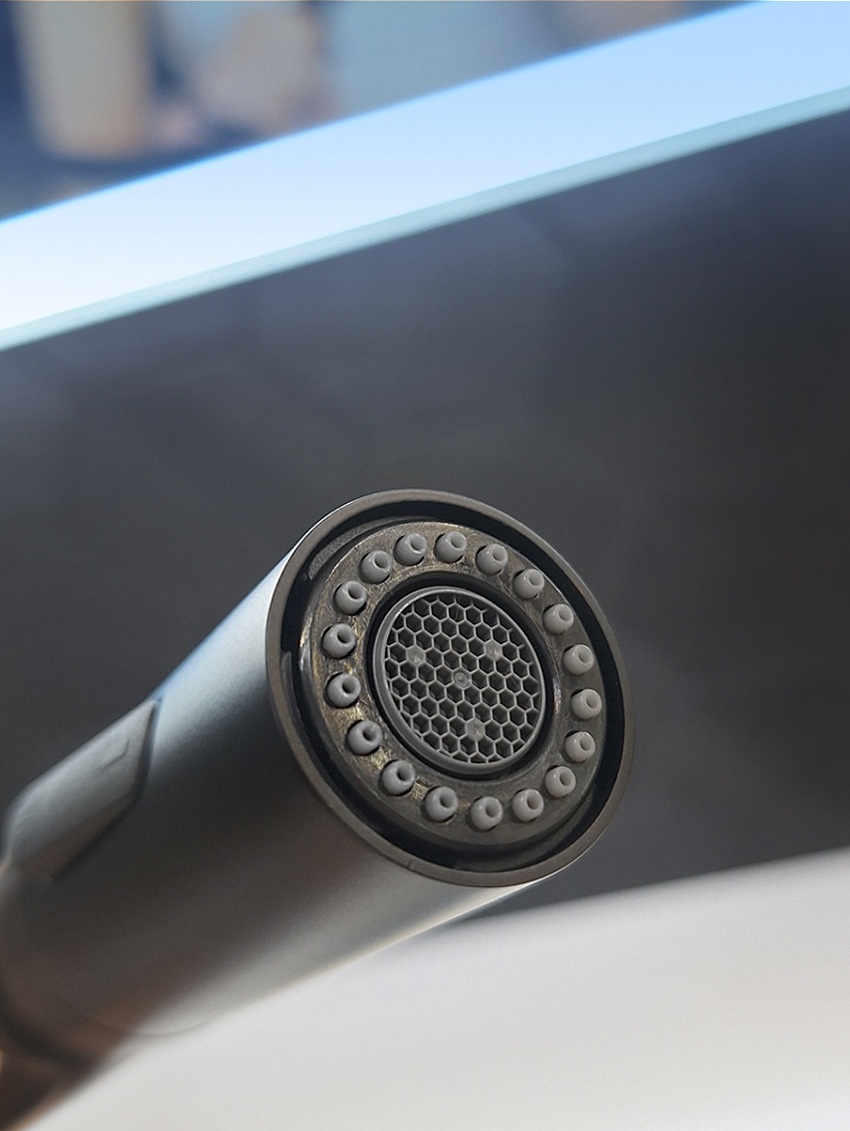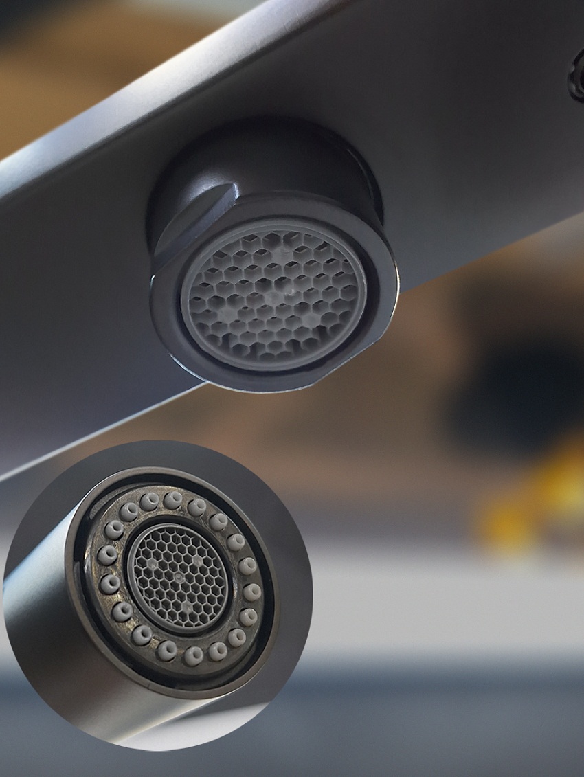 прогрессивный картридж, гибкий двухрежимный излив, аэратор - смешивающий воду с воздухом и рассеивает ее, для более объемной и мягкой воды, встроенный излив для фильтрованной воды.